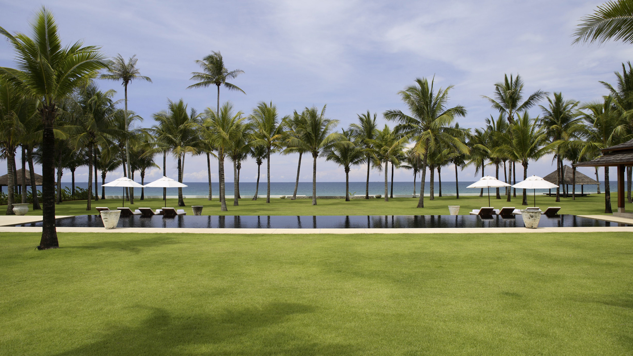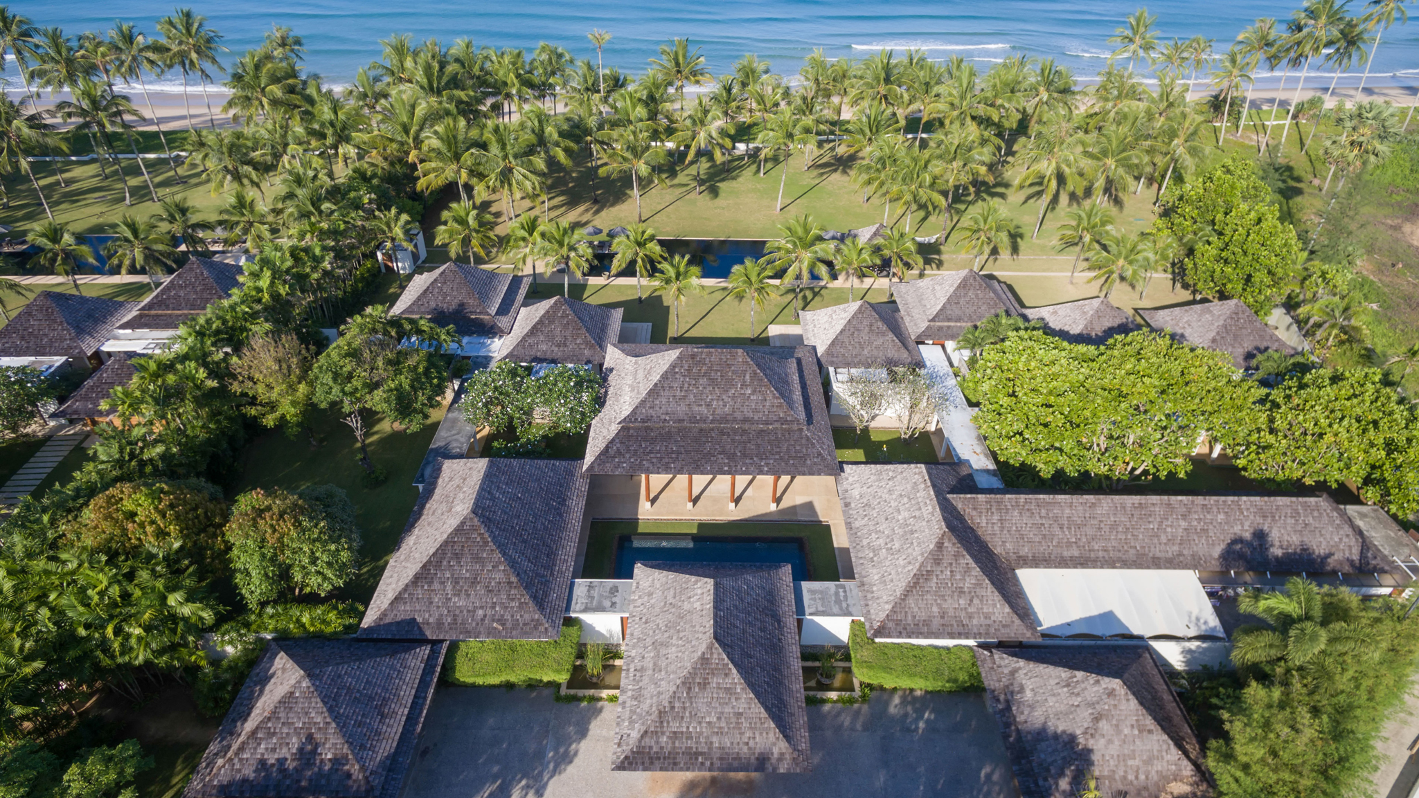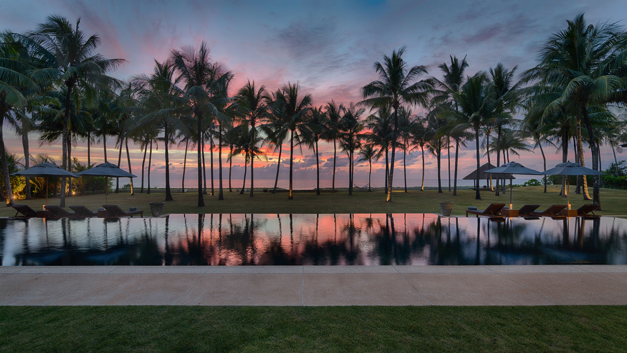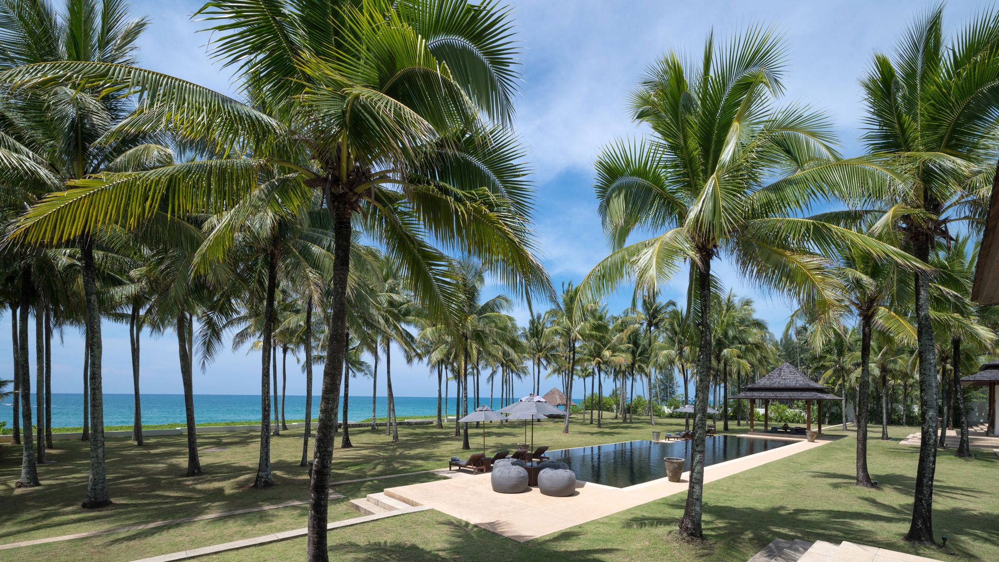 11Jivana Beach Villas - Natai Beach Phuket - Villa Ananda - Expansive pool and lawn overlooking the beach